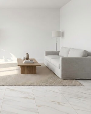 Calacatta Gold features a classic white marble look in a versatile 600 x 600 mm format. Made from durable porcelain with rectified edges, it creates a clean, seamless finish.