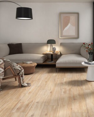 Meriadoc offers the natural look of timber with the durability and low maintenance of porcelain. Featuring a glazed surface and rectified edges for a clean, seamless finish, the long 230 x 1200 mm plank format enhances the authentic wood appearance.