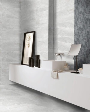 In a refined grey tone, it offers the timeless beauty of natural stone with the durability and low maintenance of porcelain, suitable for floors and walls.