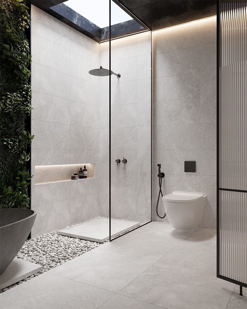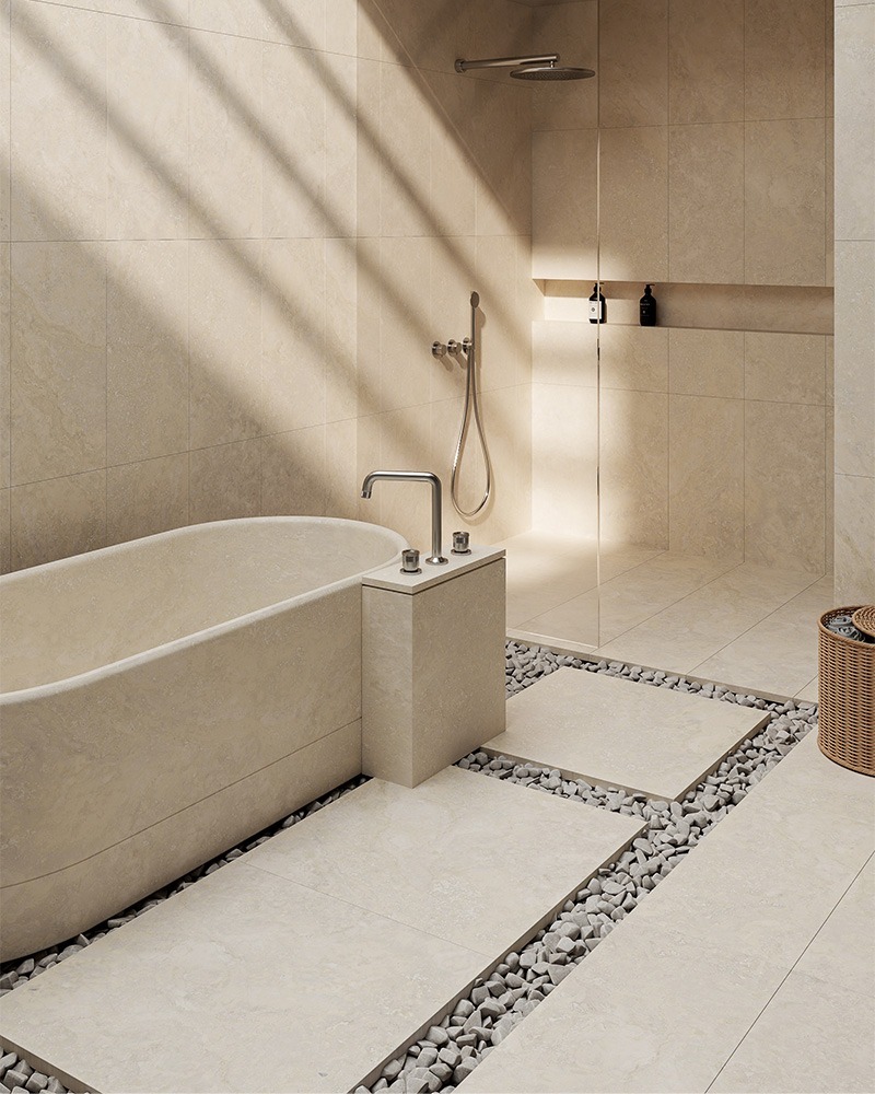 Available in two timeless tones — Grey and Ivory — Cross Travertine combines the warmth and texture of natural stone with the ease of maintenance and reliability of porcelain.